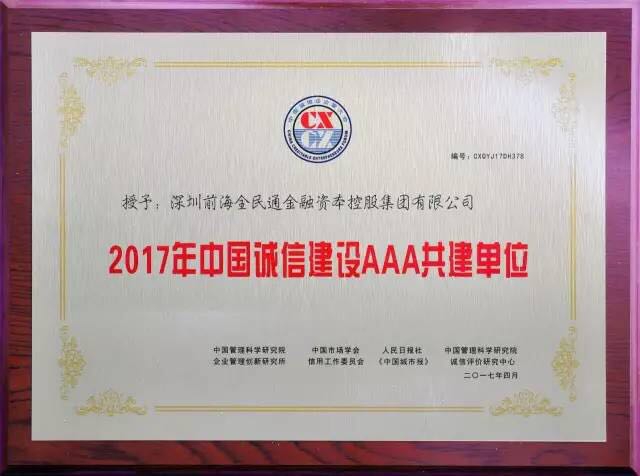 榮獲“2017年中國(guó)誠(chéng)信建設(shè)AAA共建單位”!